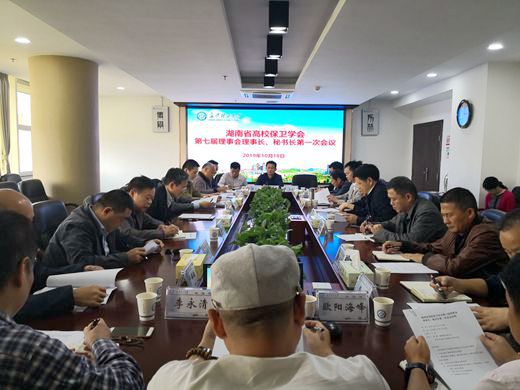 2019年10月18日下午在威廉体育williamhill一办公楼6楼会议室,湖南省保卫学会召开了第七届理事会理事长、秘书长第一次会议,保卫学会第七届理事会领导成员、教育工委维稳办张轶参加会议,会议由理事长叶泽主持。