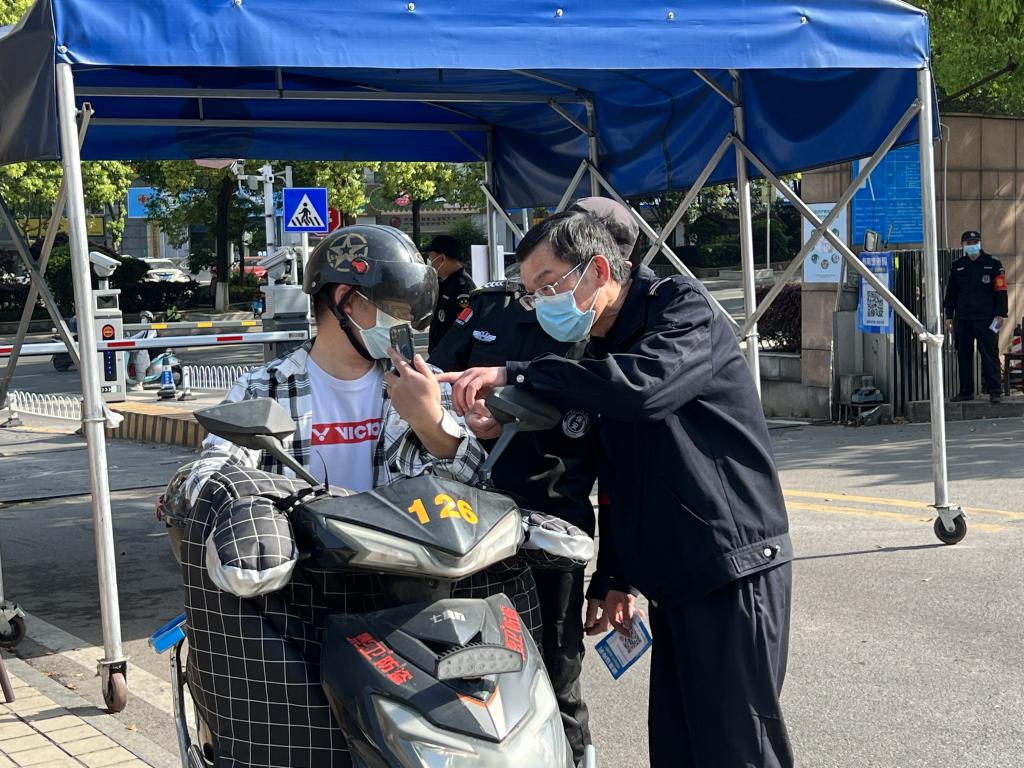 除了门岗的值守,金盆岭校区组织的11次核酸检测,张金生1次也没落下。他负责在电苑楼的前坪执勤,进行引导、维护现场秩序。刚开始易志辉担心张金生应付不过来,但张金生告诉她,现场有很多奔忙的教工志愿者,大家都抢着干活,检测的秩序有条不紊。