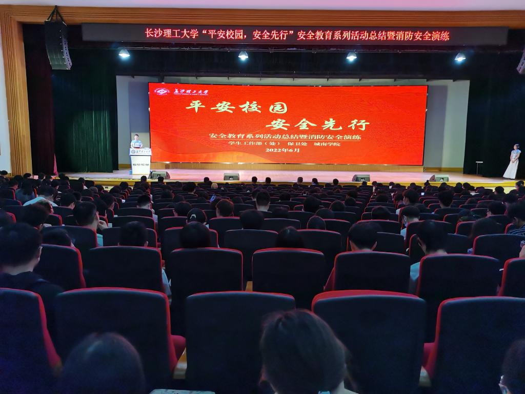 6月15日下午,威廉体育williamhill“平安校园 安全先行”安全教育系列活动总结大会暨消防安全演练在金盆岭校区五教大礼堂隆重举行。校学工部(处)副部(处)长王煜坤、保卫处副处长王艳鸿、城南学院党委书记李修春、副书记陶传谱出席会议,各学院辅导员和1000余名学生代表参加会议。