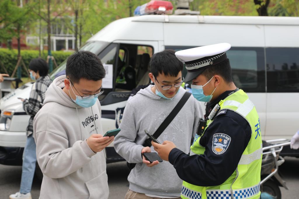 交警现场劝导学生安全驾驶