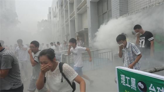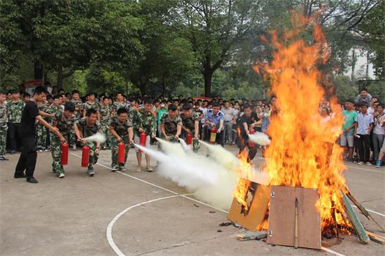 在消防安全知识讲座上,师生们观看了消防警示专题片,听取了教官讲授的消防知识;在应急疏散演练中,同学们听到警报响起,立刻用手或毛巾捂住口鼻,按照火场逃生要领,在老师的指引下迅速有序地沿安全通道撤离到了安全地带;在灭火演练活动中,消防官兵现场演示灭火器的正确使用方法,并让师生分组使用灭火器灭火。尤其在对子弟学校组织的实地逃生演练中,在班主任不知情的情况下由保卫处工作人员滞留了2名学生在楼上某间教室,班主任在集合地点清点人数,迅速发现少了2人并报告教官,由教官着防火服上楼搜寻,找到由保卫处工作人员看护的2名学生,帮他们带上防毒面具,背着他们下楼到达集合地点,整个过程组织有序,达到了预期效果。