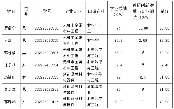 现予以公示,公示期为2025年9月11日至2025年9月13日。如对以上名单有异议,请实名与材料科学与工程学院教务办联系,联系电话:0731-85258497,联系人:李老师,电子邮箱:851187698@qq.com。