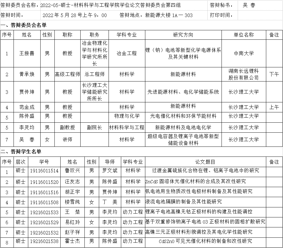 材料科学与工程学院研究生论文答辩安排(四)