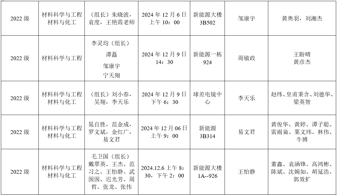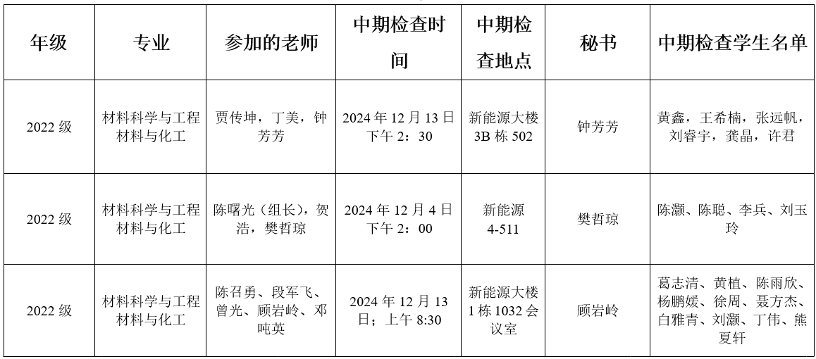 材料科学与工程学院研究生学位论文中期检查安排表