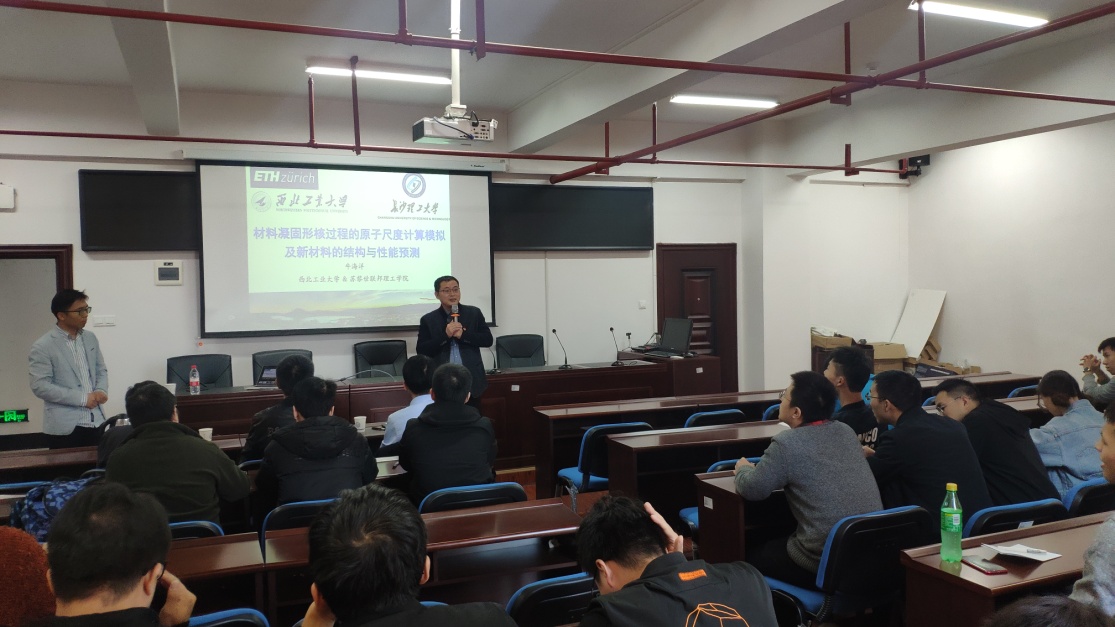 2019年10月28日下午15:00在新能源大楼1A- 302多功能会议室,材料科学与工程学院邀请了西北工业大学牛海洋教授到学院进行题为“材料凝固形核过程的原子尺度计算模拟及新材料的结构与性能预测”学术报告。学术报告会由院党总支书记张国强主持,他代表材料学院对牛海洋教授的到来表示热烈欢迎,并介绍了牛海洋教授的基本情况,材料学院70师生出席了此次学术报告会。