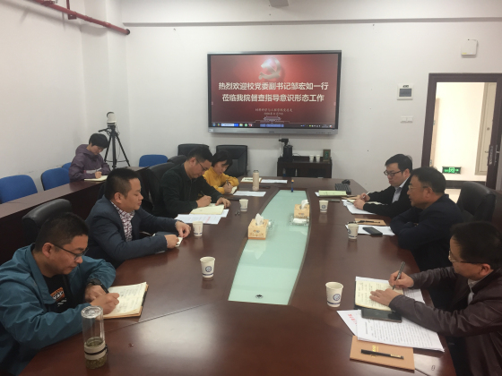 校党委副书记邹宏如对我院意识形态工作落实情况予以充分肯定。邹书记指出,希望通过专项督查能够强化意识、提高认识、保证工作有效落实,要明确“是什么、为什么、干什么”,充分发挥工作主动性,加强主流意识形态工作的正面宣传,结合本职工作,构思主流意识下的思想文化建设,以文化引领,按规章办事,抵制非主流意识形态,防范化解舆情风险。邹书记进一步强调,要以润物无声的渗透,理清工作思路,确保理论上的清醒、行动上的自觉,党员领导干部要多深入一线基层教师中去,加强师德师风建设,倡导主流文化,要保证传道授业解惑真正落地生效,最终体现在学院发展、教师成长、学生成才上,领导班子要有意识地围绕目标和中心去开展工作,保障学院教师的幸福感、归属感和获得感,进一步把工作做实做细,希望学院在今后的工作中进一步加强对意识形态工作的组织领导,抓好阵地建设管理,凝聚正能量,实现新作为,争取取得更大的成绩。