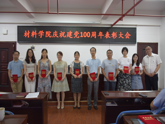 为庆祝建党100周年,更好地推动党史学习教育,把“学史明理、学史增信、学史崇德、学史力行”落到实处, 7月1日上午8:00,材料学院在新能源大楼1-302会议室举行了庆祝建党100周年表彰大会。会议由院党总支副书记陈华主持,学院全体师生党员参加了会议。
