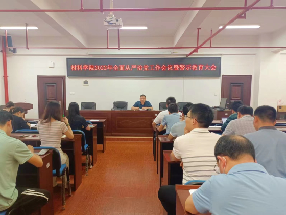 6月14日下午,材料学院在新能源1-302会议室召开2022年全面从严治党工作会议暨警示教育大会。大会由院党总支书记唐超文主持,材料学院全体教职工参加会议。