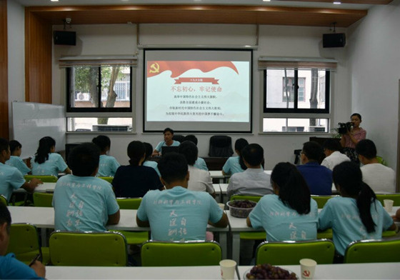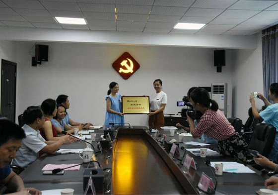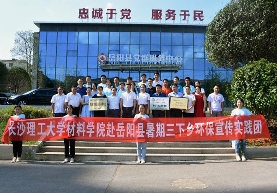 会议开始前,唐青、李海斌、贺浩一行慰问实践团成员,亲临新墙河边,了解活动的开展情况,并对实践活动进行指导。会议伊始,周鹏代表县委县政府向本次授牌仪式表示祝贺,对材料学子不畏酷暑、热心环保、服务群众的奉献精神表示肯定。他强调政府工作要提高服务意识,要为学生发展创造更好的平台。在简介岳阳县的情况后,他重点介绍了岳阳县对人才的重视程度、人才引进方式及岳阳县发展的潜力,在讲话的结尾他呼吁大学生要增强本领,回馈家乡,为家乡的发展做贡献。随后,唐青对当地领导及党群服务中心的支持表示感谢,并提到了两点感受。第一,本次活动是一趟坚定信念之旅,岳阳县党群服务中心将党的理论知识宣传与切实的志愿服务结合的模式让学生们看到信念和实际的服务结合可以真正落地,学生可以真正用自己的行动去服务群众。这种模式也为学生党建工作的开展带来启发,提供了新思路。第二,本次活动是一趟践行初心的实践之旅。她希望可以通过校地合作的实践活动让学生了解岳阳县,了解当地政府对于地方经济发展、改善民生的策略,鼓励学生去往祖国需要的地方建功立业。接下来,唐青与汤雅麟签订“校地合作”大学生实践基地协议,并授予七色之光党员志愿者协会“校地合作”大学生实践基地牌匾。最后,材料学院实践团负责人、学生党员段吉鹏为与会人员开展主题为“深入学习十九大,助力家乡新变化”的主题党课,并与会人员一起合影留念,至此仪式圆满结束。