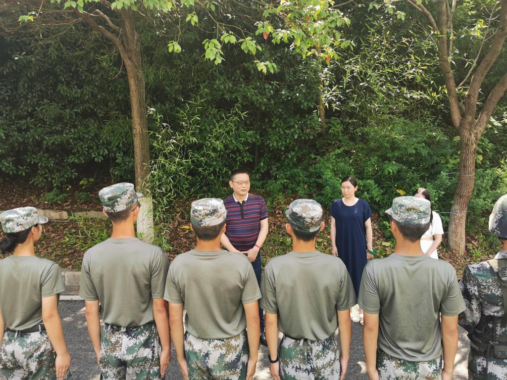 7月21日,材料学院党总支书记张国强、副书记陈华以及全体辅导员前往训练场地慰问在校集训的7名民兵连教官。