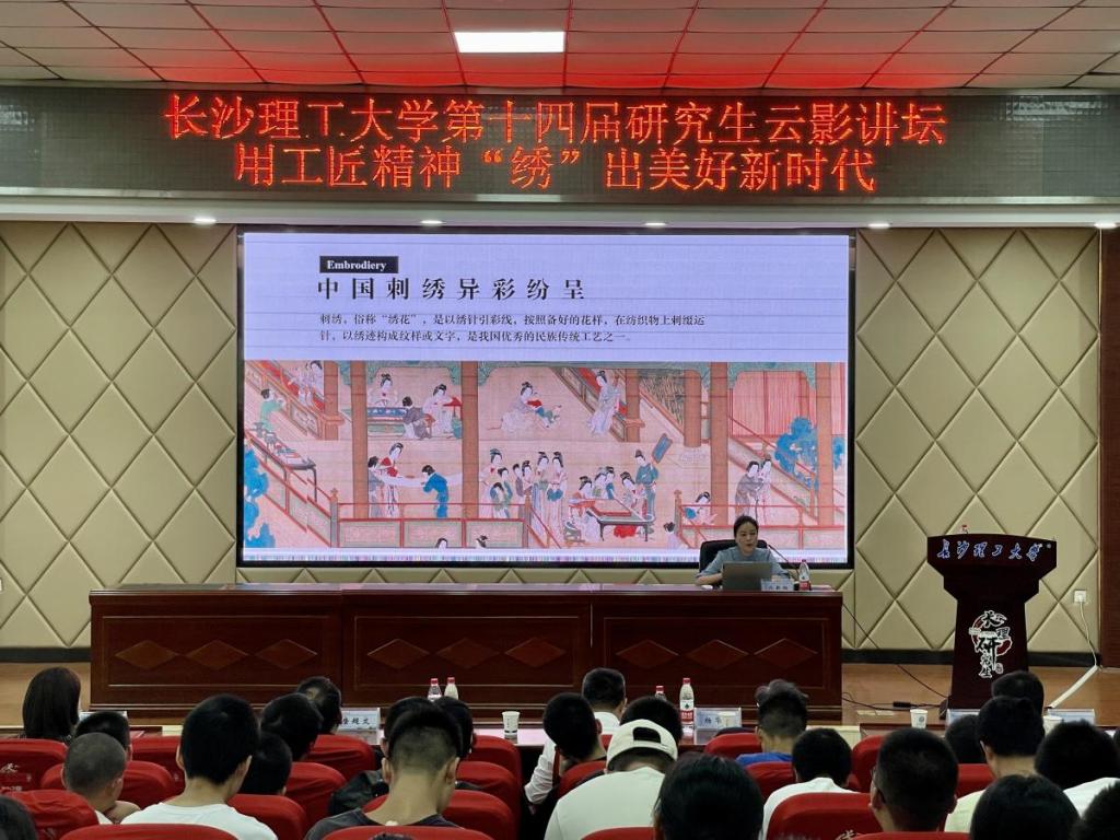 10月25日下午,由威廉体育williamhill研究生院主办、材料科学与工程学院承办的第十四届研究生云影讲坛在云塘校区文科楼A200举行,本次讲座邀请到湖南省湘绣研究所湘绣生产部主任成新湘女士担任主讲嘉宾。讲座由材料学院党总支副书记陈华主持,威廉体育williamhill党委委员、副校长胡永乐、研究生院院长杨华锋、研究生院副院长兼研工部部长田上、材料学院党总支书记唐超文、副院长杨现锋出席,各学院研究生代表聆听了讲座。