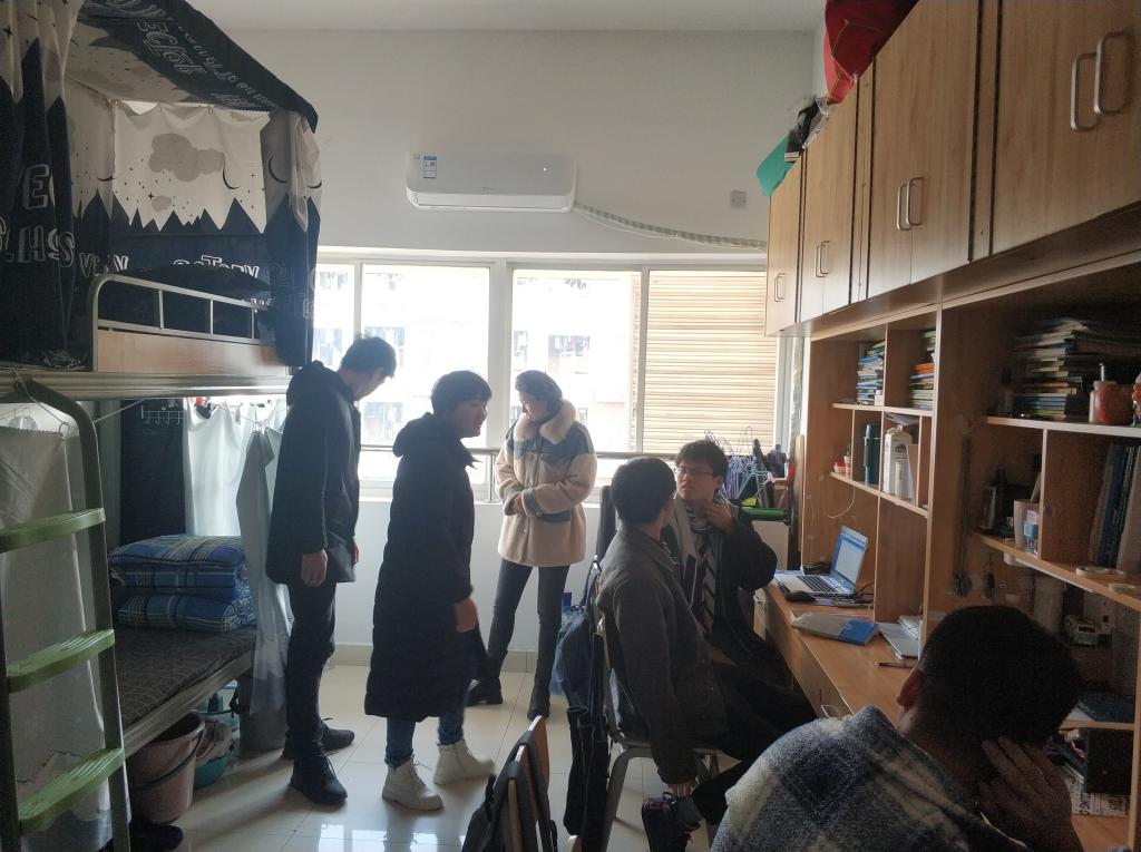 12月29日至30日,材料学院全体学工人员走访学生宿舍,排查宿舍安全隐患。本次排查由学院党总支副书记陈华带队,辅导员银波、谢易真、陈鑫林参加。