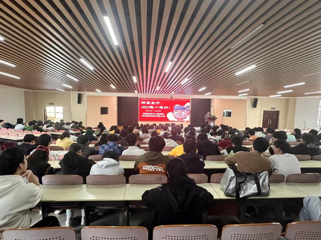 3月21日,材料学院2022级本科生“拼尽全力,2025我一定行”主题年级大会在工科三号楼A201报告厅举行。学院团委书记李心怡、辅导员谭方林及2022级全体学生参会,大会围绕开学状态调整、学情分析、日常管理、未来规划等模块展开系统性指导,并邀请校友分享考研经验。