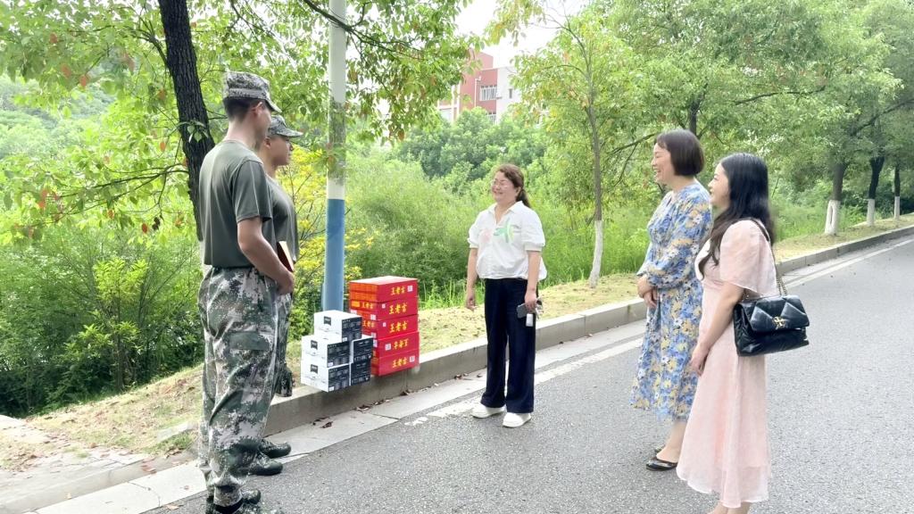 7月8日下午,材料学院党委书记郑延恒、党委副书记邵巧艳以及全体辅导员,前往学校学活篮球场集训场地,亲切慰问承担新生军训任务的民兵连参训教官。
