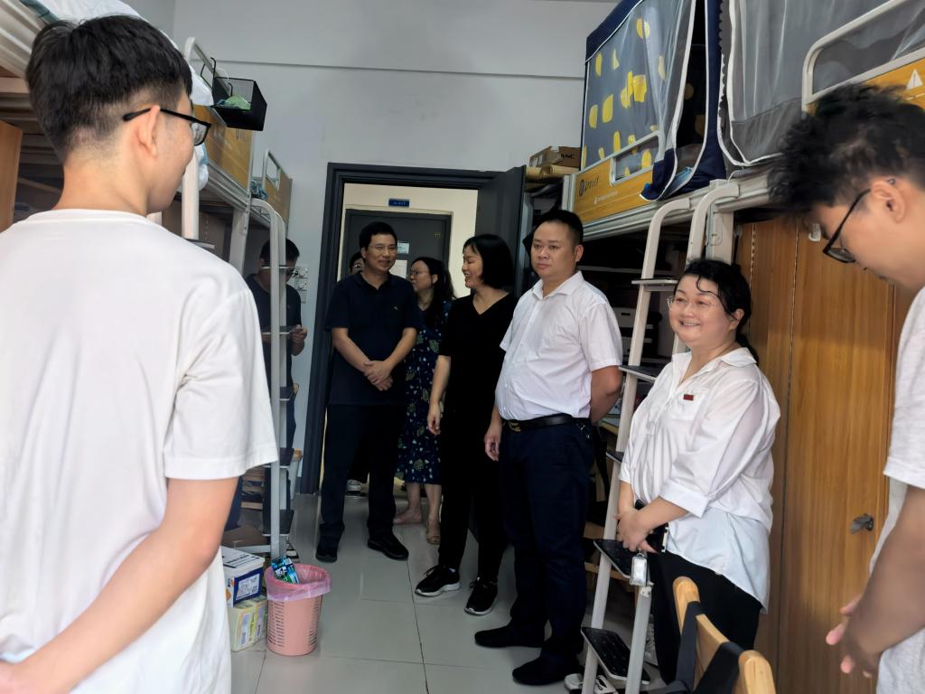 在新生宿舍,学院领导细致查看了宿舍设施配置和生活环境。针对部分宿舍存在的设施问题,领导现场要求相关工作人员详细记录、及时报修,确保为新生提供舒适便利的居住条件。