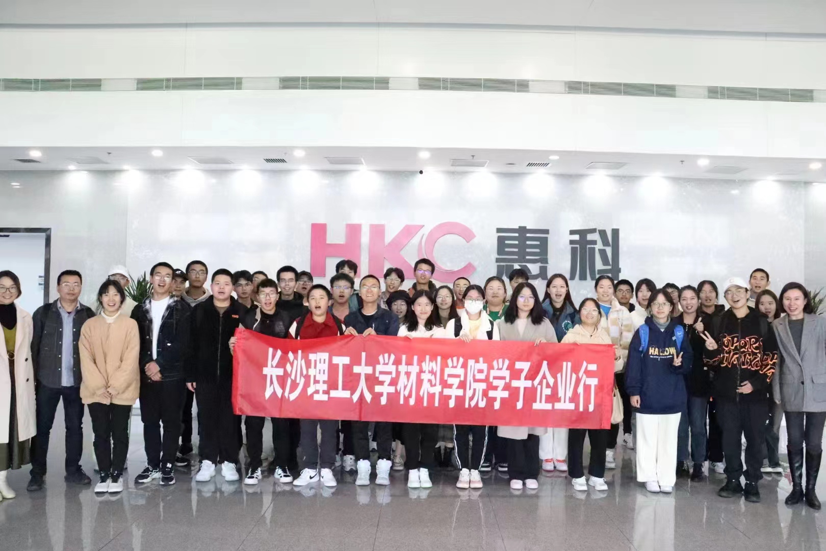为进一步加强校企合作交流,推进校企协同育人发展,提高人才培养质量,近日,材料学院党总支副书记陈华、新能源材料与器件系主任张怡琼、辅导员谭方林等40余名师生前往长沙惠科光电有限公司参观学习。