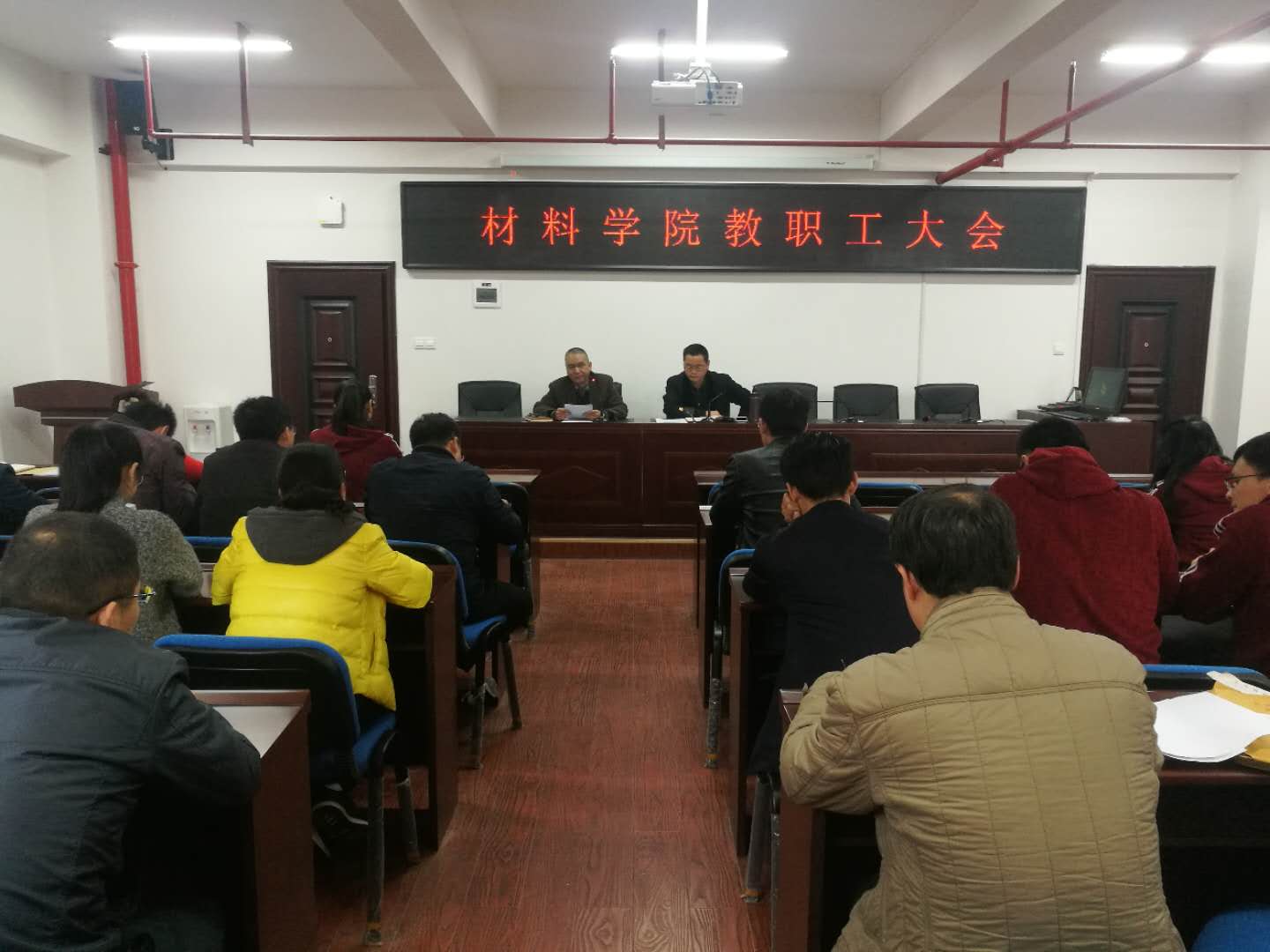 3月13日下午,材料学院在新能源大楼1号楼302多功能会议室召开全院教职工大会。大会由学院党委书记张国强主持。