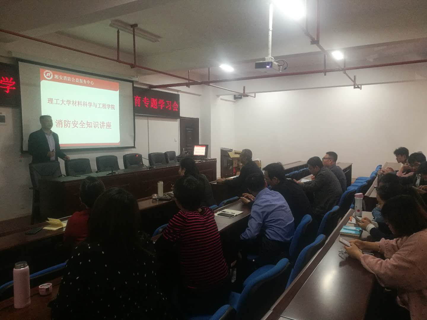 会后,学院为加强全体教师的消防安全意识,特邀了湖南省消防协会的吴悔教官进行消防安全专题讲座,尤其是针对学院实验室防火消防安全进行了专门培训,取得了良好的效果。