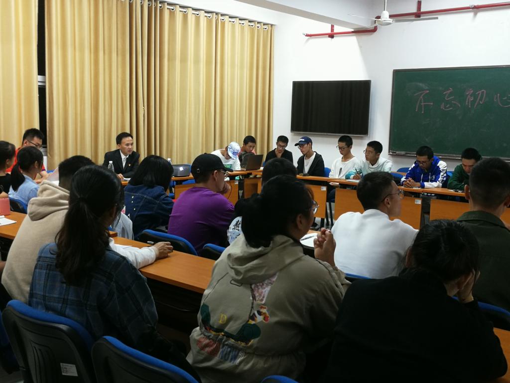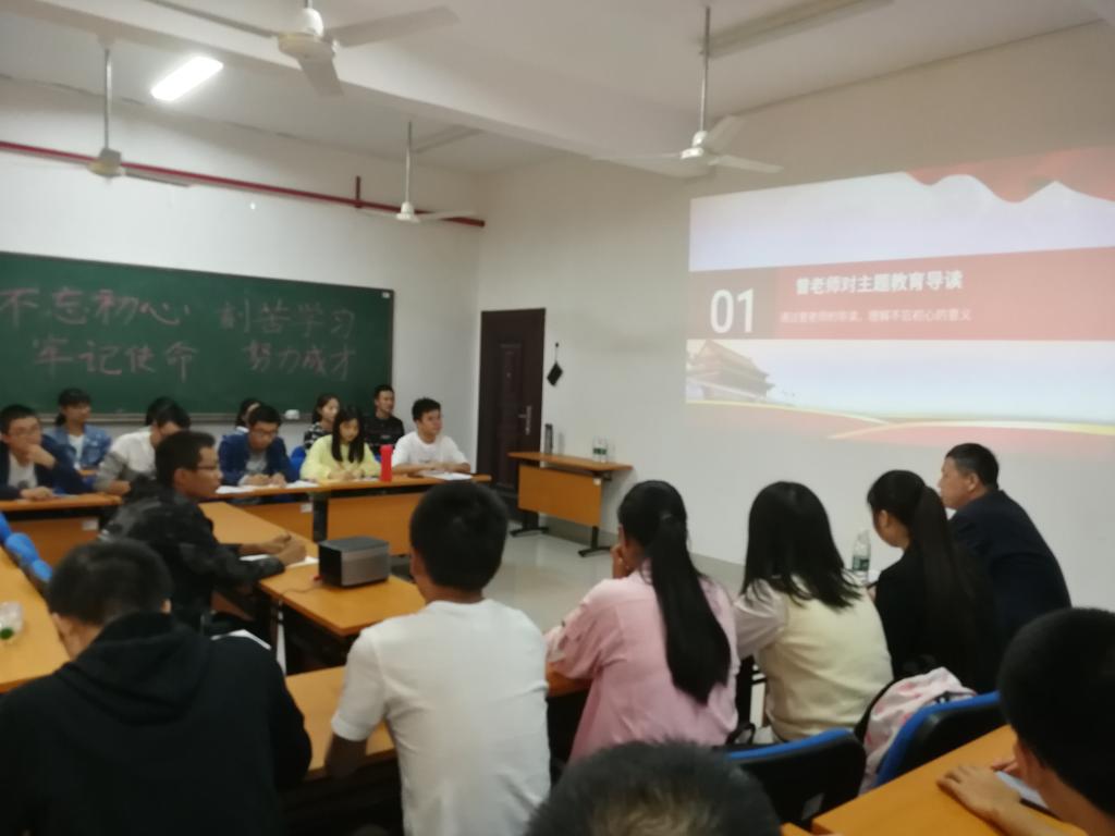 专题班会上,各位领导和老师对主题教育的总要求、根本任务、具体目标和重大意义,以及习近平新时代中国特色社会主义思想的核心要义进行了解析,向同学们深入浅出的阐释了新时代用习新思想武装头脑的必要性。付宏渊从主题教育的重要意义、实现目标以及青年大学生如何加强党的创新理论学习三个方面进行导学;侯伟健讲述了“不忘初心、牢记使命”的深层内涵,联系学校的发展变化以及青年学生的使命鼓励同学们做“有理想、有信念、有家国情怀”的爱国青年;许建兰讲解了马克思主义在中国传播和党的发展历程,以共和国勋章张富清老英雄的故事寄语学生要做奋斗者,以青春书写自己的历史;曾兰桂从国家、社会、个人三个层面介绍了不忘初心的必要性,引导同学们不忘初心、牢记使命,刻苦学习、努力成才;张国强从实现中国梦的需要、学生成长成才的需要明确了开展主题教育的意义,详细阐述了新思想的鲜明特质。班级党员、入党积极分子、学生代表均就学习谈及了自己的体会。学生党员舒琳结合组织发展的历程再次回顾了自己的入党初心,深刻感受到经过党组织的培养和不断的学习,她对党组织的情感日益深厚,更加坚定了自己的信仰,对中国美好的明天也更有信心。材料类1906班郭普特同学认为当前的首要任务是学习,应在学习中坚定理想信念,锤炼道德操守、弘扬正义正气,努力使自己真正成为毛主席所说的“一个高尚的人,一个纯粹的人,一个有道德的人,一个脱离了低级趣味的人,一个有益于社会的人。”随后,与会领导与同学们就近期思想、学生、生活展开了交流,为其答疑解惑。