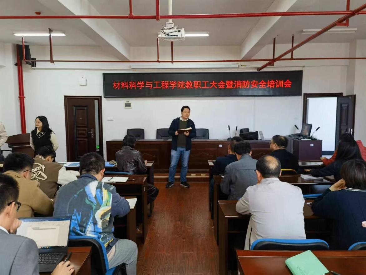 2023年11月21日下午,学院在新能源大楼1-302会议室召开全体教职工大会暨消防安全培训会。会议由院党总支副书记陈华主持,全体教职工参加。