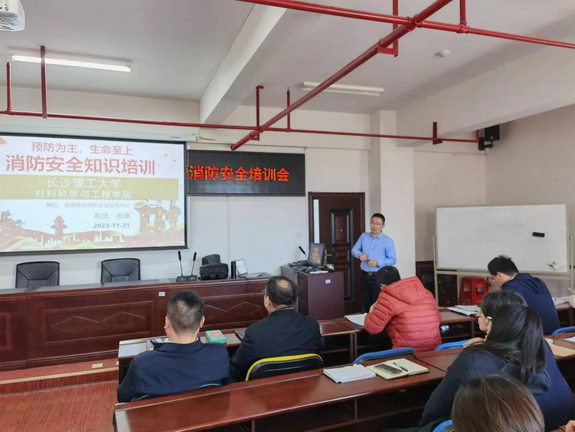 最后,会议结合“119”消防安全宣传月“预防为主,生命至上”活动主题,特邀湖南君消消防安全服务中心的张建教官为大家上了一堂生动的消防安全培训课。张建教官介绍了火灾的危害性和常见的火灾原因,强调了预防火灾的重要性。他向大家详细解释了如何正确使用灭火器、逃生通道以及如何进行灭火和疏散等紧急情况下的操作指南。通过播放视频短片以及演示教学等方式,让大家更加清晰地了解消防器材的使用方法、注意事项以及应对火灾的处置措施。通过此次培训,大家进一步掌握了火灾防范、逃生、灭火技能,增强了消防安全意识。下一步,学院将坚持把消防安全融入日常工作,把实验室与学生宿舍作为管控重点,切实筑牢消防安全防线。(文、图/欧阳炼 审/唐超文)