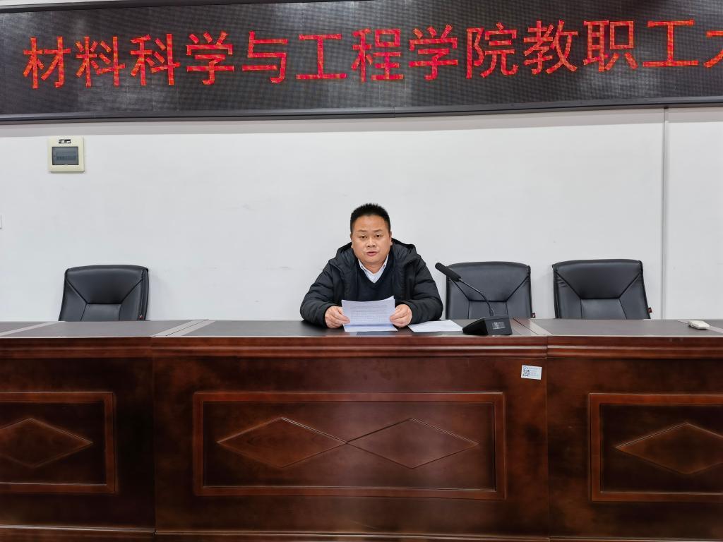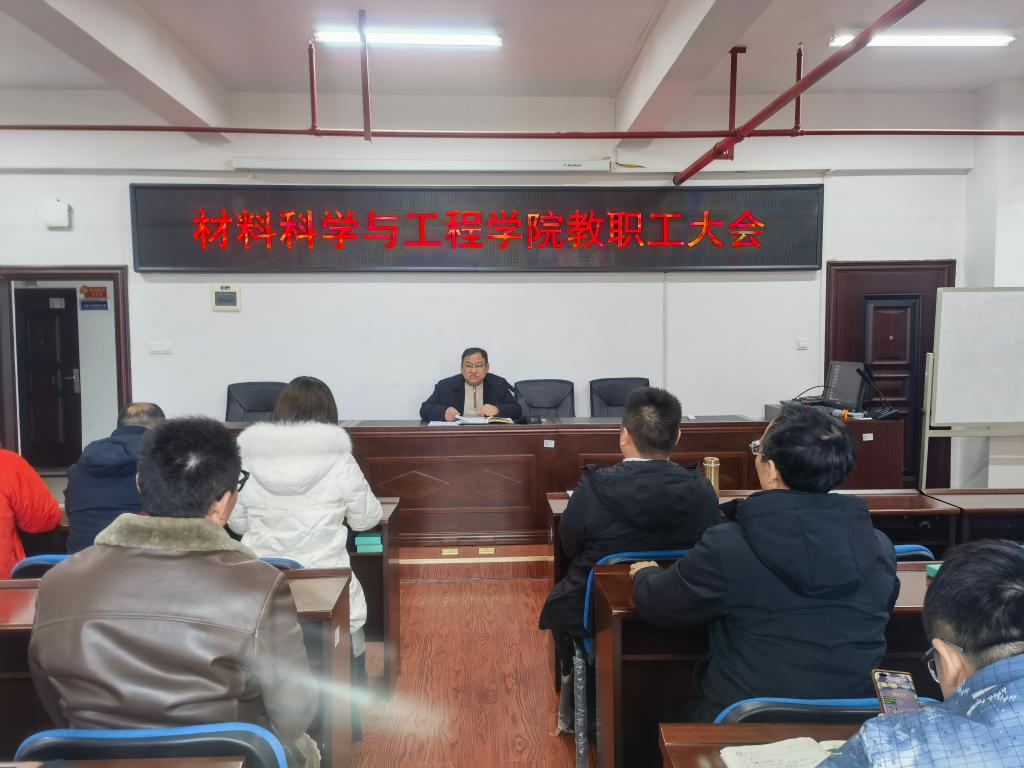 2024年2月27日下午,材料科学与工程学院在新能源大楼1-302召开全体教职工大会,大会由院长毛卫国主持,学院全体教职工参加。