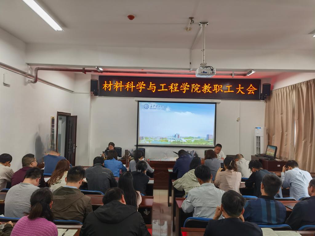 11月5日下午,材料学院在新能源大楼1栋九楼会议室召开全体教职工大会,全面总结了本学期前期工作,并对下一阶段的教学、科研等重点工作进行了详细部署,全体教职工参会。