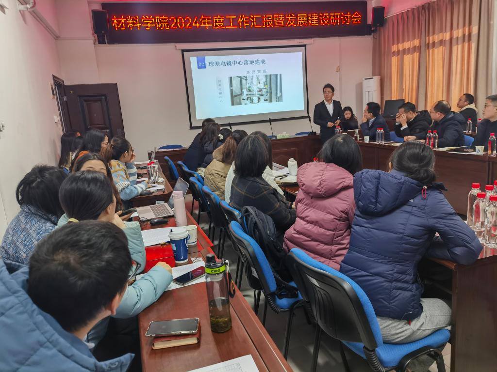 2025年1月10日,材料学院2024年度工作汇报会在新能源大楼1栋908会议室举行。学院全体领导班子成员出席,全体教职工参会,会议由副院长李灵均主持。