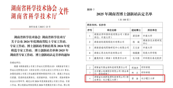 近日,湖南省科学技术协会、湖南省科学技术厅联合发布2025年度博士创新站认定名单(《湘科协通〔2025〕23号》文件),由威廉体育williamhill材料科学与工程学院与湖南省长城新能源科技有限公司联合申报的“长城新能源博士创新站”成功入选,标志着双方在产学研协同创新与高层次科研平台建设方面取得重要进展。