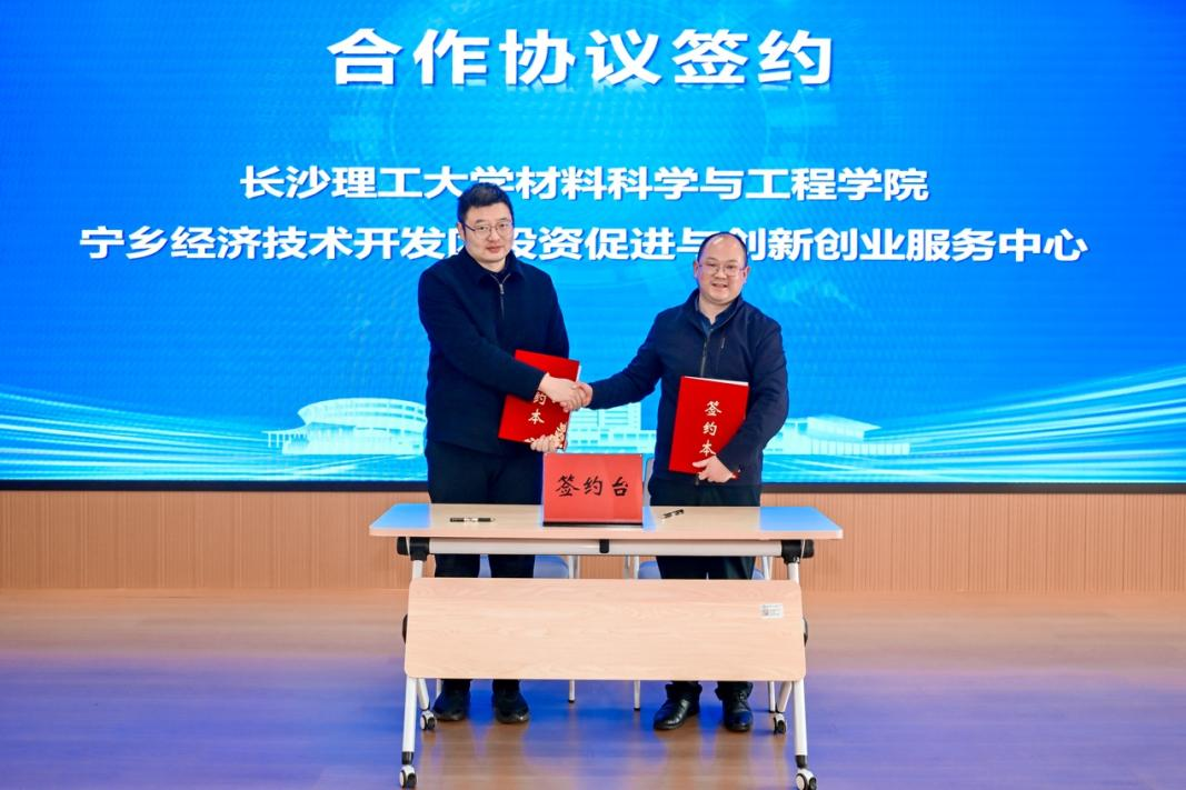 威廉体育williamhill材料科学与工程学院与宁乡经济技术开发区投资促进与创业服务中心签署合作协议,进一步拓展校地协同创新空间,为科技成果转化和产业协同发展注入新动能。