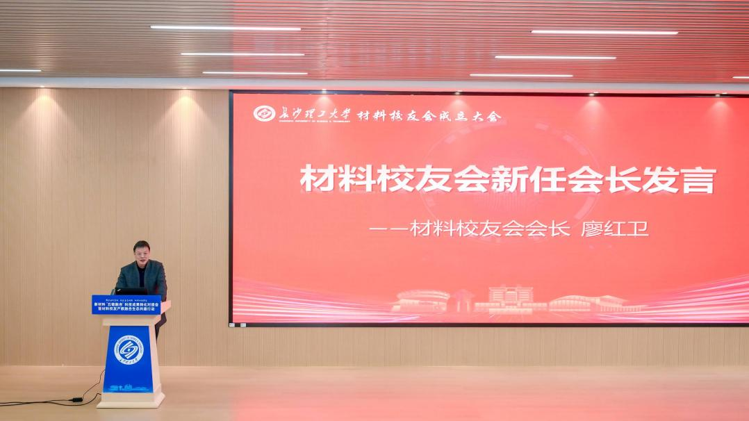 新当选材料校友会会长廖红卫在发言中饱含深情地回顾了母校的培养之恩,并向全体校友致以诚挚谢意。他郑重承诺,将以校友会成立为契机,以“联络校友、促进合作、服务社会”为主线,努力将校友资源有效转化为推动学院高质量发展的实际力量。