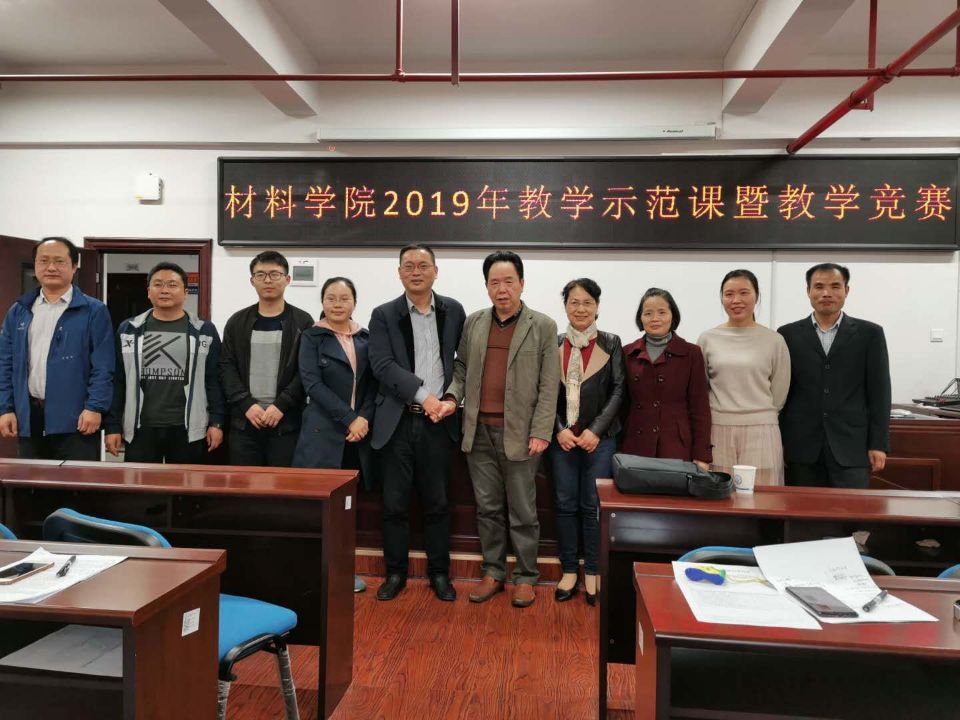 4月16日下午, 材料学院在新能源大楼1号楼302举行了2019年教学示范课暨教学竞赛活动,活动由副院长陈曙光主持,杨现锋老师进行教学示范课,成茵等4位老师参与教学竞赛的角逐,学院全体专任教师观摩了此次教学活动并担任评委。邀请了督导专家高纯一教授、郭克希教授进行现场指导。