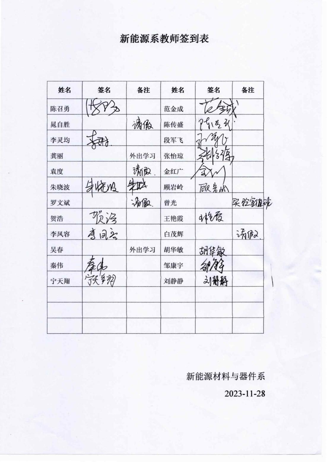 为了充分发挥基层教学组织在落实学校立德树人根本任务、完成教学和人才培养工作、促进教师教学能力发展、加强专业建设和课程建设、推进教学改革等方面的重要作用,我系于2023年11月28日下午15:30在新能源大楼1栋305办公室开展了基层教学组织教研活动。全体新能源材料与器件系教师参会。老师们一起研学了《本科毕业论文(设计)工作管理办法(2023)》《OBE 理念在教师教学过程的实施及成效(2条件、5内涵、4原则、5要点)》等文件和学习资料,并对基层教学组织在教师教学能力提升中的作用和基层教学组织在教学质量监控与保障组织体系中的作用等方面开展了讨论。