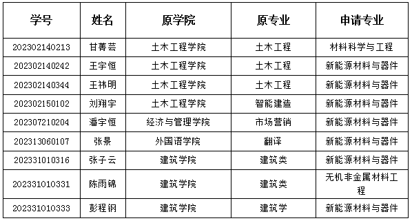 根据学校《关于做好2023级在校本科生转专业(类)工作的通知》(教通字[2024]9号)和《材料科学与工程学院2024年本科生转专业工作细则和实施方案》的相关规定,经学生个人申请,学院初审,现将本院2023级本科生转专业初审合格名单进行公示公示期3月23日-3月25日。如有疑问,可在公示期内向材料科学与工程学院教务办反映。电话:85258487;联系人:李老师,电子邮箱:851187698@qq.com