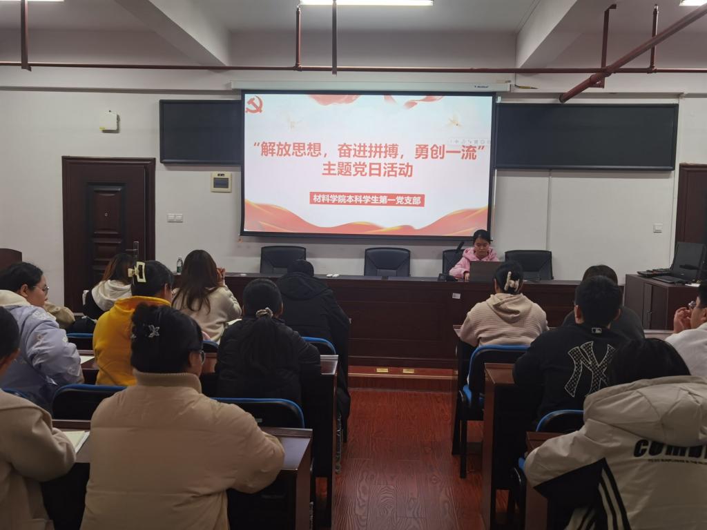 3月19日,材料科学与工程学院本科学生第一党支部于新能源一号楼302室开展了“解放思想,奋进拼搏,勇创一流”主题党日活动,本次活动由党员任雨垚主持。