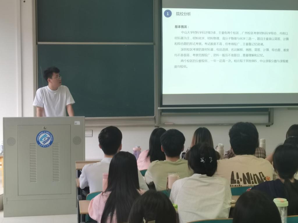 4月23日下午,材料科学与工程学院本科学生党支部于工科三号楼B211开展“理想启航,研梦飞扬”主题党日活动分享考研学习经验。本次活动由本科一支部和二支部联合举办,共60余名低年级党员和入党积极分子参加。党员何艺璇主持了本次活动。
