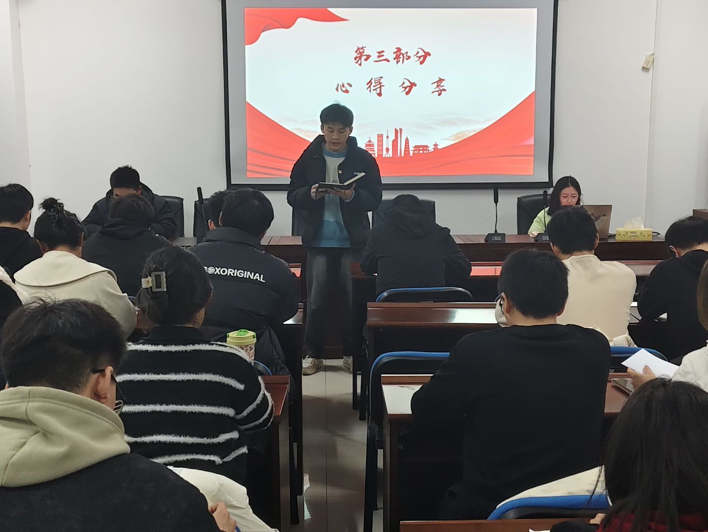 最后,范志为、肖应广、徐兴涛和蔡晓威四位同志结合所学内容和个人实际情况,分享了他们的感悟。他们一致表示,将坚持全面从严治党和全面深化改革的坚定态度与决心,摒弃反向思维,致力于推动高质量发展。作为大学生党员,应当将更多的热情投入专业知识的深化和创新中,以此来强化自己,更好地贡献于社会,承担起时代赋予的使命。