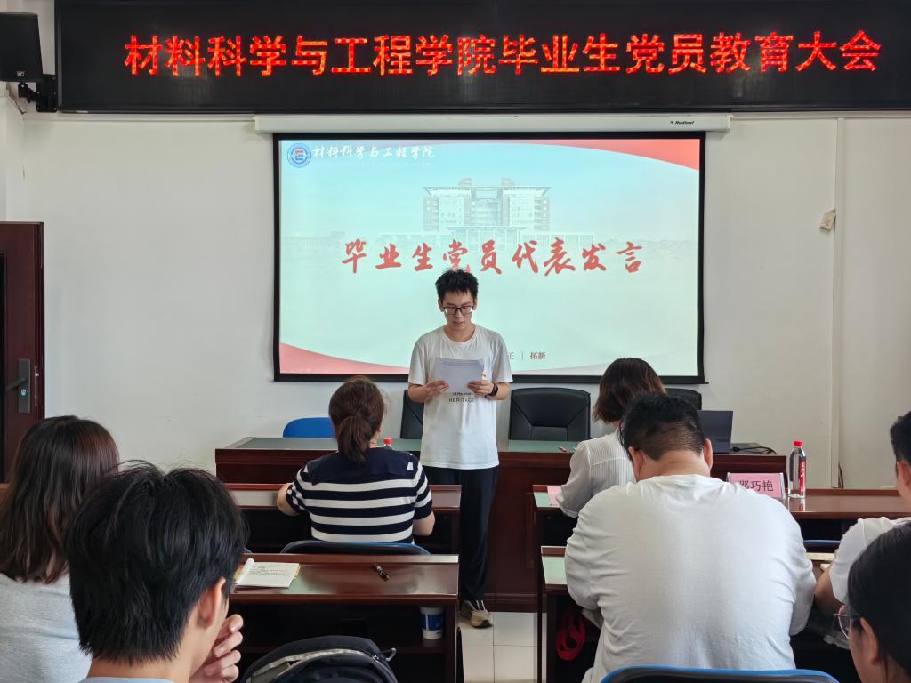 代表发言彰显担当。毕业生党员代表王金哲结合自己的入党经历发言:"作为新时代材料人,我们将以'国之所需,吾之所向'的信念,把论文写在祖国大地上。"其发言引发强烈共鸣,现场多次响起热烈掌声。本次活动是学院毕业教育的重要环节,为毕业生党员上了一堂生动的离校前"最后一课",进一步淬炼了毕业生党员的理想信念。