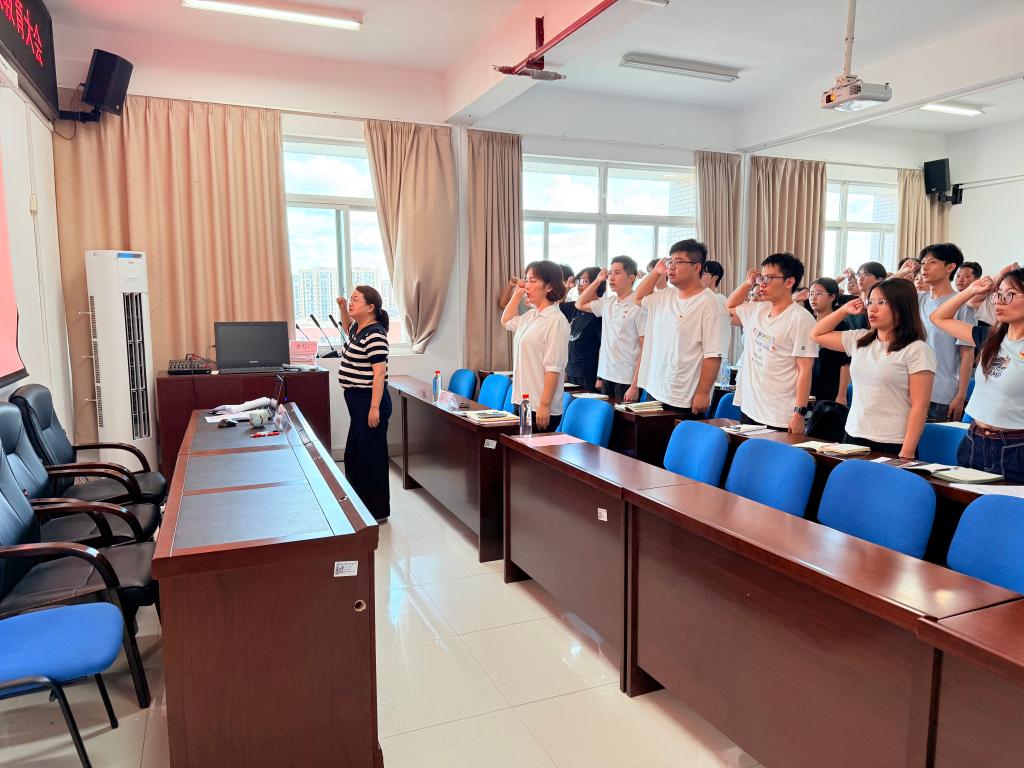 重温誓词铭记初心。在庄重的党旗前,郑延恒书记带领全体毕业生党员重温入党誓词。铿锵有力的宣誓声中,党员们再次感受到"为共产主义奋斗终身"的使命重量。随后,书记还给毕业生党员送上了定制政治生日贺卡,贺卡印有入党日期和党组织寄语,成为了党员同志们特殊的毕业纪念。