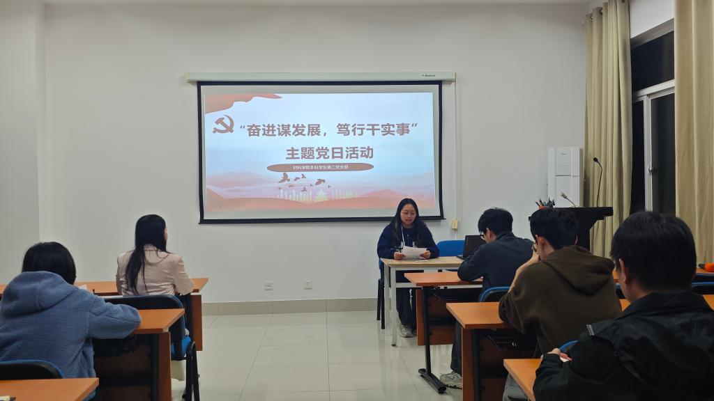 10月21日晚19:00,材料科学与工程学院本科学生第二党支部在新能源1号楼804室举办“奋进谋发展,笃行干实事”主题党日活动,活动由党员邓沁怡主持。