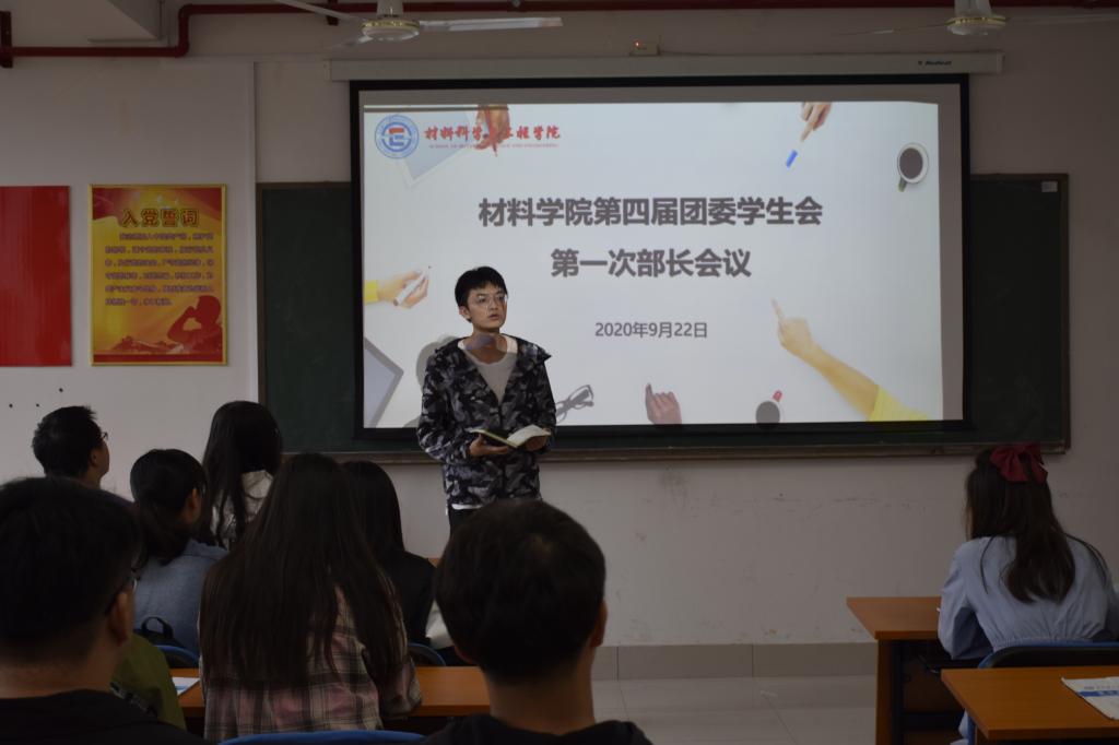9月22日,材料学院第四届团委学生会第一次部长会议于新能源一号楼303室召开。院团委书记陈鑫林出席会议,团学会主席团成员、全体部长参会,本次会议由团学会主席高春旺主持。