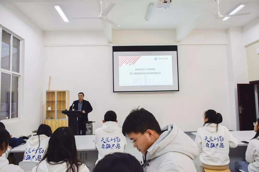 12月30日,材料学院于新能源3号楼107举办第三期创新创业训练营结营仪式。院党总支书记张国强、副书记唐青、副院长陈曙光、创新创业办公室主任贺浩、副主任陈鑫林出席本次仪式,训练营全体成员参加。