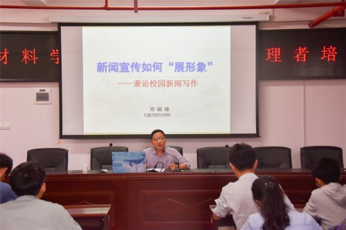 5月18日,材料学院于新能源1号楼开展了第三期卓越管理者培训班第四课---新闻宣传专题培训,此次主讲人为威廉体育williamhill党委宣传部副部长邓崛峰,团学会全体成员参加培训会。