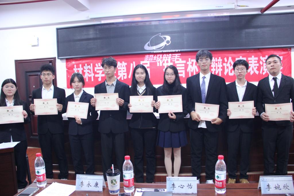 10月27日晚,材料科学与工程学院在云塘校区新能源一号楼302室举办了材料学院“青春践行二十大”第八届“执言杯”新生辩论赛表演赛。本次表演赛由学习部成员及执言辩论队成员组织,2022级辩论队成员参加,学院辅导员李心怡、辩论队队长李婉欣和李永康担任评委,辩论队全体成员获最佳辩手称号。
