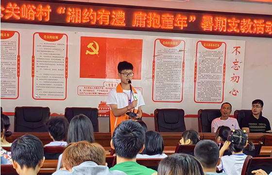关爱留守儿童,给予童年陪伴。7月6日,材料学院赴张家界桑植县教育关爱团队在桑植县陈家河镇仓关峪村村民委员会启动暑期支教活动,陈家河镇民政所所长汤建在、仓关峪村村委书记龚照琴出席活动,全体支教队员及当地家长等80余人参加。