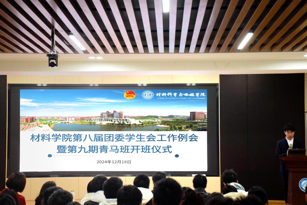 12月18日晚,材料学院于工科三号楼A201召开团学工作例会暨第九期青马班开班仪式。材料学院党委书记郑延恒、党委副书记邵巧艳、学工办主任谢易真、党建辅导员谭方林、分团委书记李心怡出席,材料学院团委学生会全体成员参加。