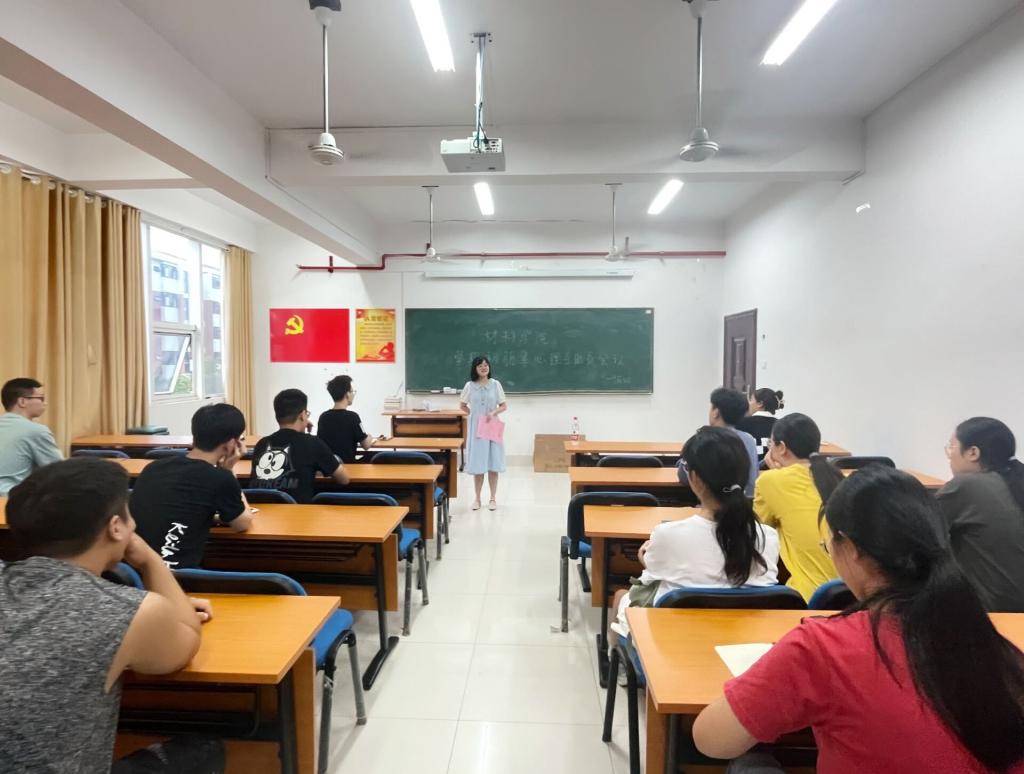 9月8日晚,材料学院在新能源一号楼303室召开学期初朋辈心理互助员培训会。学院心理辅导员谢易真主讲,各年级级朋辈心理互助员参加。