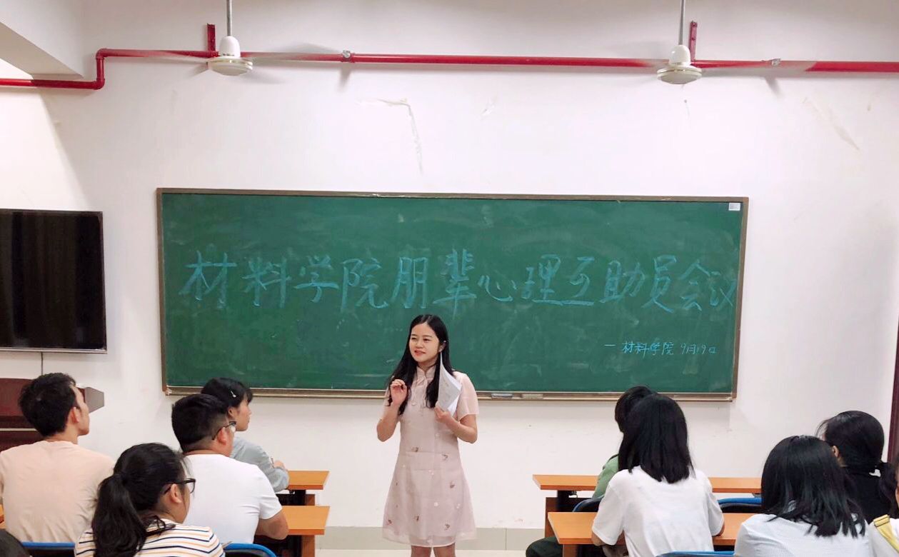 9月20日晚18点,材料学院于在新能源大楼303召开了朋辈心理互助员会议,学院心理辅导员谢易真、新生年级辅导员银波、团学会心理部、各班心理互助员以及新生班助参与了本次会议。