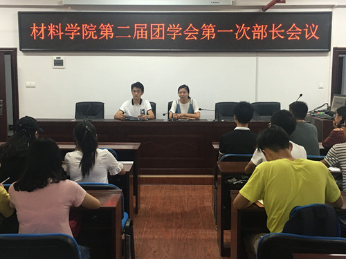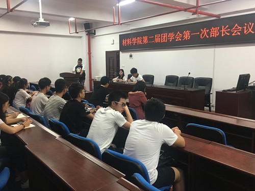 2017年9月6日,材料学院于新能源大楼302教室举行了第二届团学会学生干部骨干会议。学院党委副书记唐青,辅导员谢易真、陈鑫林老师以及团学会各部门部长、副部参加了此次会议。