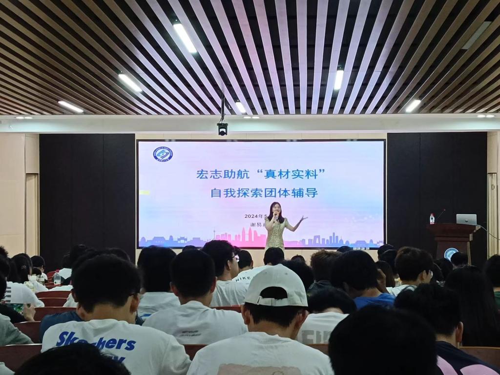 2024年5月21日下午,材料学院第二十七期宏志助航“真材实料”自我探索团体辅导在工科三号楼A201室展开,辅导员谢易真担任主讲人,2023级全体学生参加。